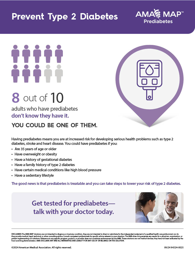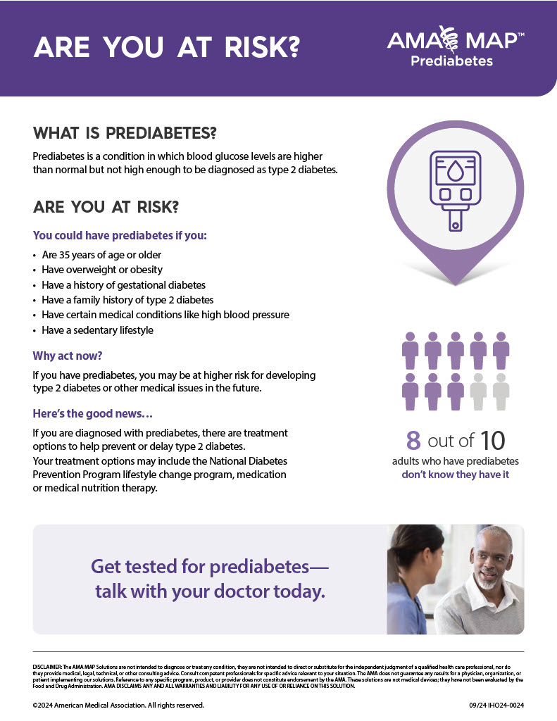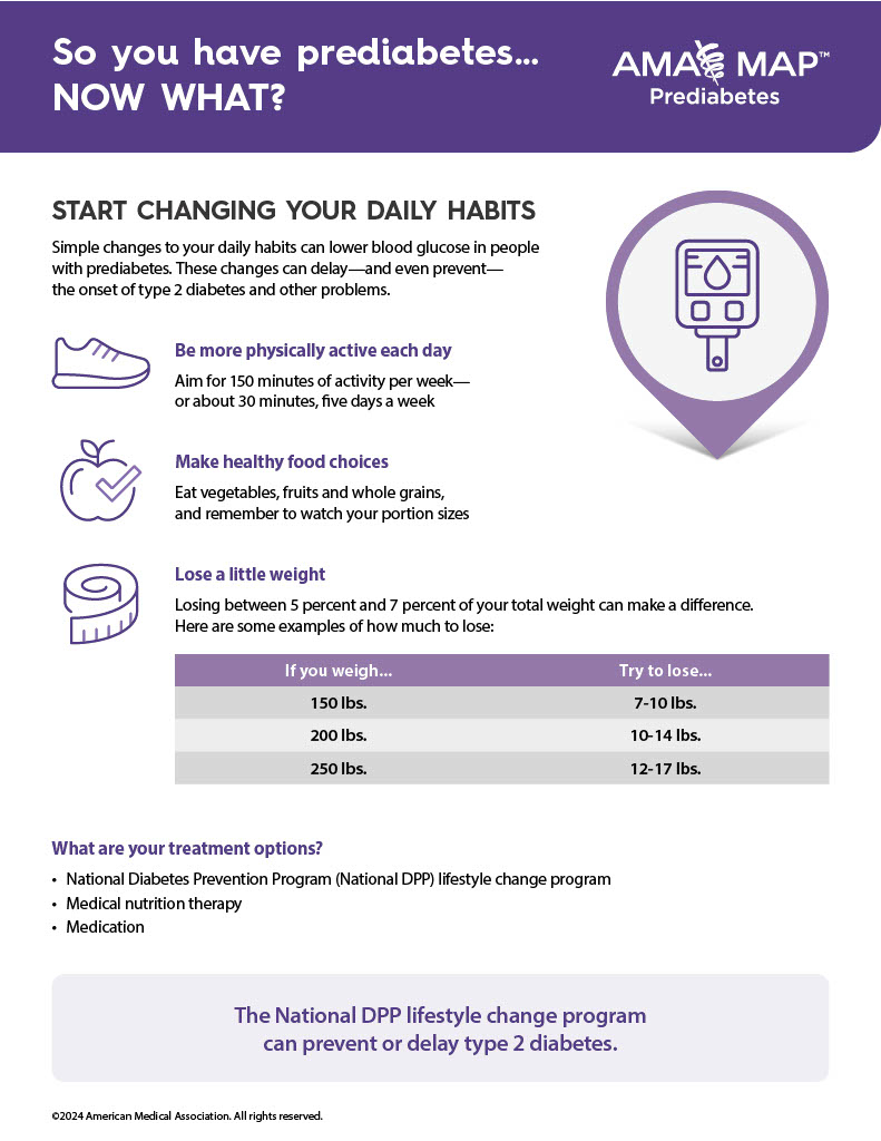 This resource shares information about prediabetes for diagnosed patients and highlights treatment options, including the National DPP lifestyle change program.